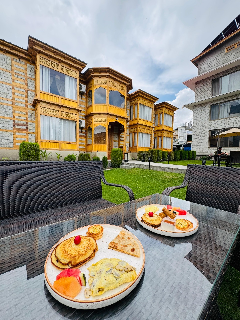 Step into a space where every detail tells a story. Our interiors are a tribute to Balti craftsmanship, featuring intricately carved wood, handcrafted furniture, and warm, earthy tones that create a cozy and inviting atmosphere for you to relax in.
